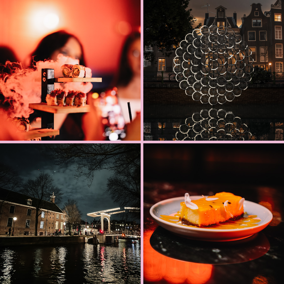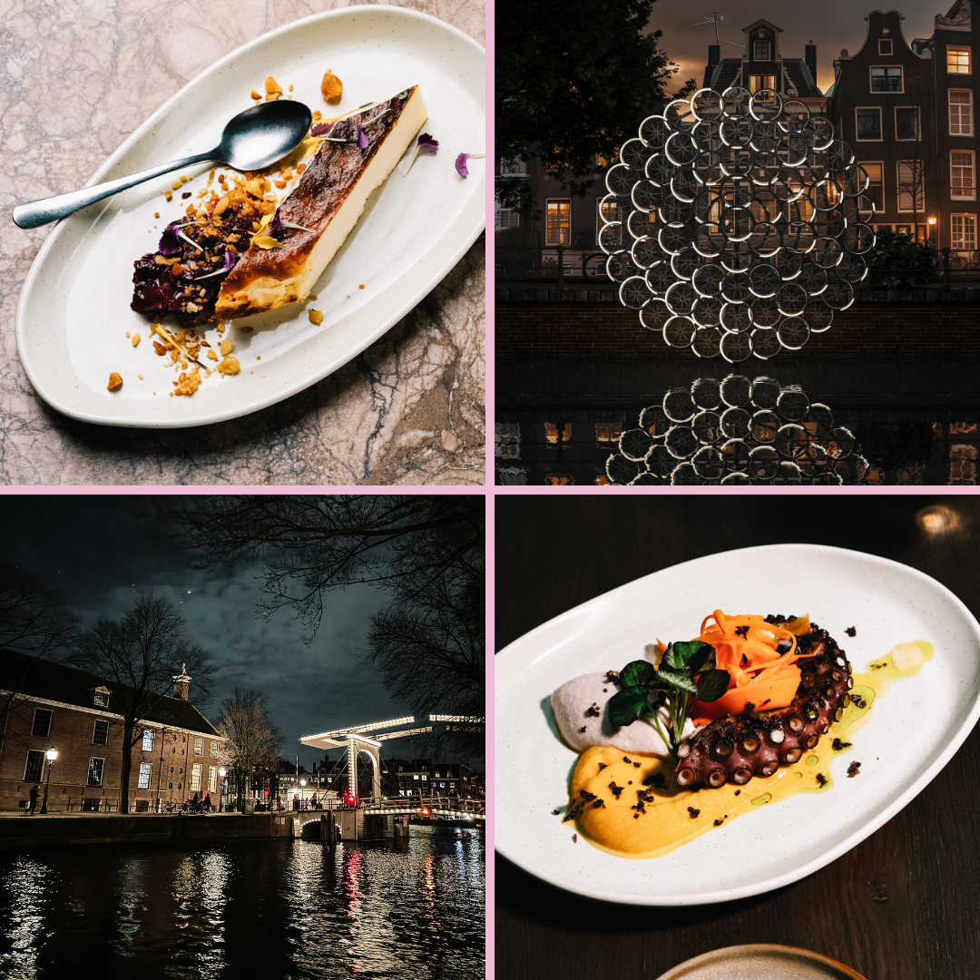 The Early Dinner & Walk is perfect for those who want to enjoy a full dinner before exploring the Amsterdam Light Festival. Start your evening with a delicious two-course menu (starter and main) at one of our partner restaurants, then head out to discover the city’s illuminated artworks.